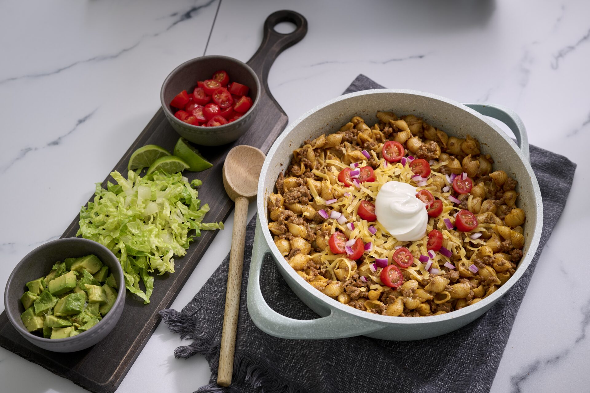 A taco pasta skillet is already a flexible one-pan meal, so you can easily customize it to your taste. Here are some ways to make it your own: